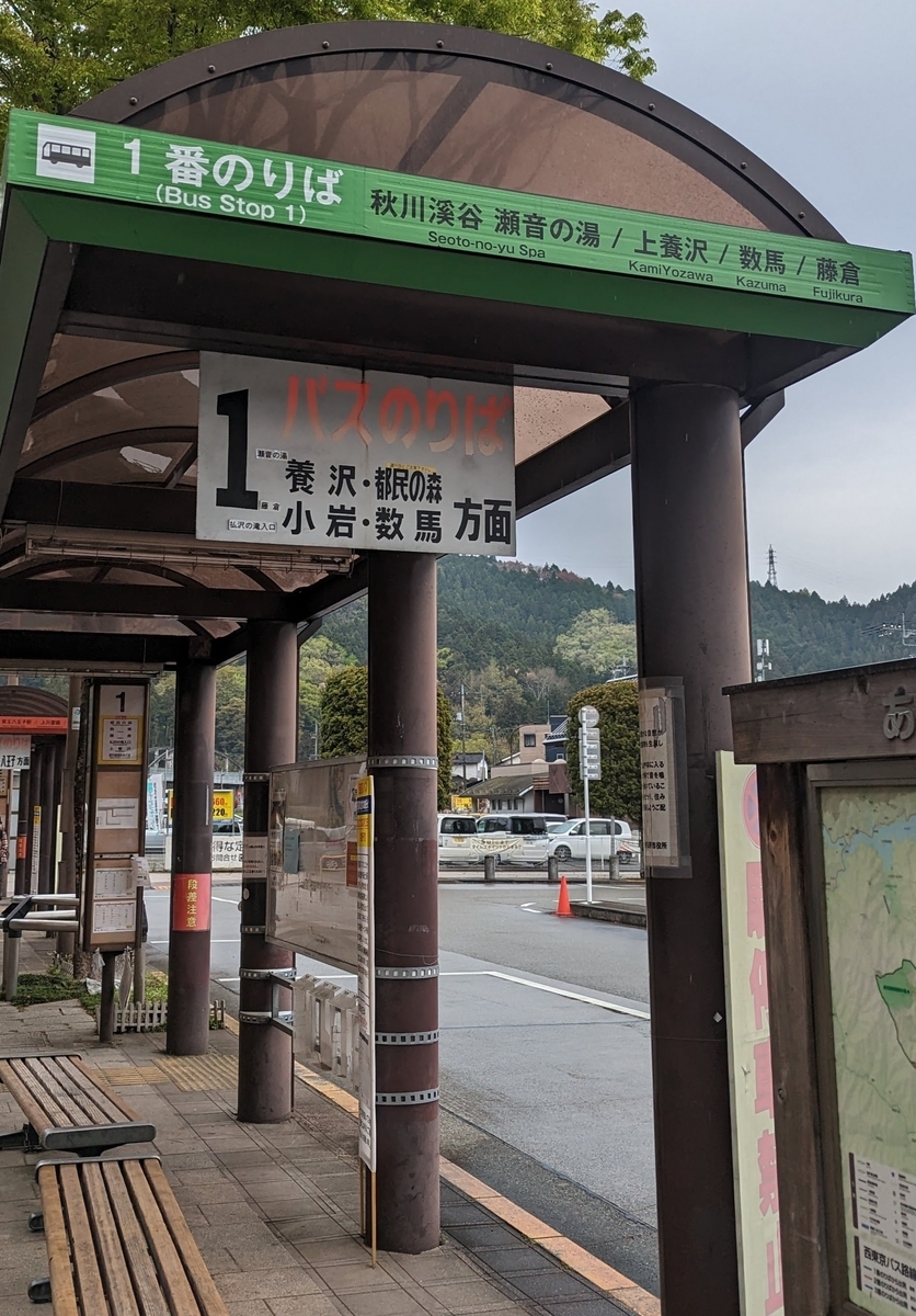 1番乗り場から数馬行きに乗りますが、1~2時間に1本なので、ご利用の方はお気をつけ下さい。