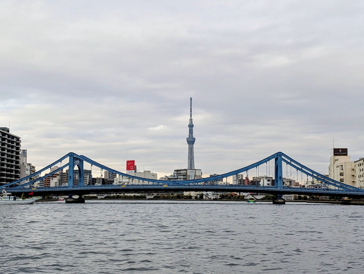 曇り空の中でも、スカイツリーは堂々とそびえ立ち、江戸から現代へと続く時間の流れを一本につないでくれる。