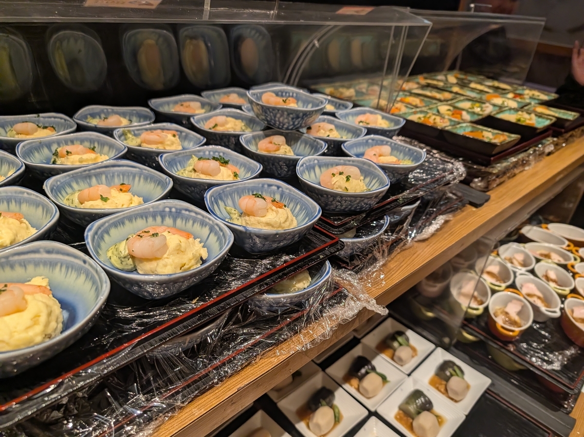 和洋中がずらりと並ぶビュッフェ形式で、小鉢も豊富、野菜もたっぷり、味付けもやさしい。